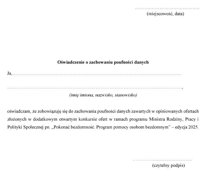 WZÓR - OŚWIADCZENIE O ZACHOWANIU POUFNOŚCI DANYCH