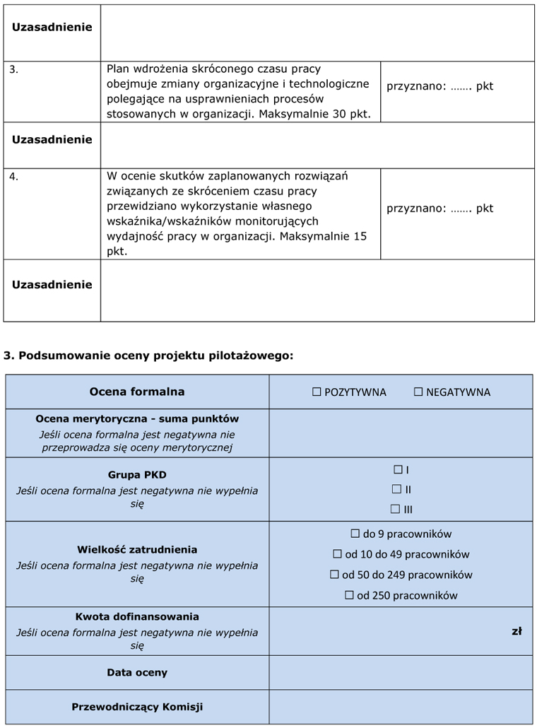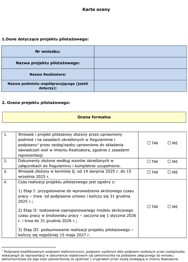 § 8. 1. Ocena projektów pilotażowych odbywa się na podstawie kryteriów określonych w Regulaminie naboru na projekty pilotażowe pod nazwą „Skrócony czas pracy - to się dzieje!”.