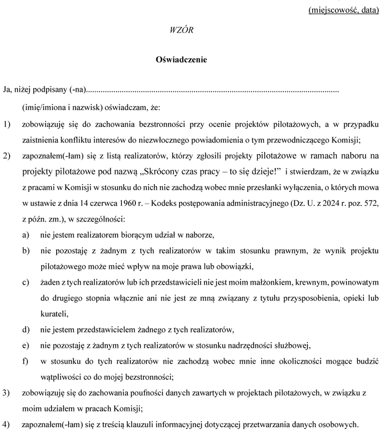 3. Członkowie Komisji w przypadku braku możliwości zachowania bezstronności w ocenie projektów pilotażowych lub zaistnienia konfliktu interesów, powiadamiają przewodniczącego i wyłączają się z prac Komisji.