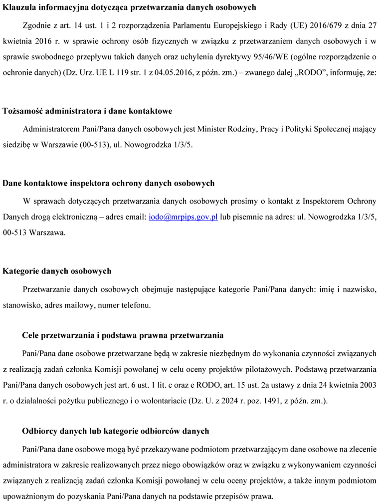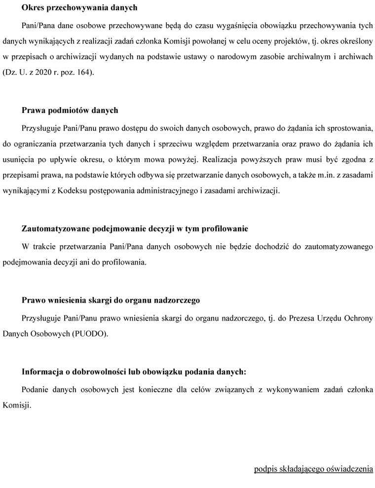 3) zapoznaniu się z klauzulą informacyjną dotyczącą przetwarzania danych osobowych w Ministerstwie.