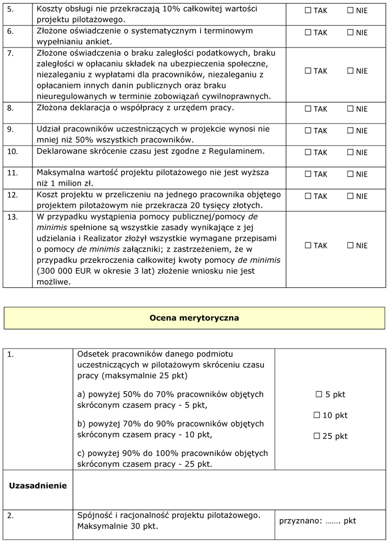 5. Jeżeli w ocenie formalnej na wszystkie pytania zostanie udzielona odpowiedź pozytywna, wówczas projekt pilotażowy podlega ocenie merytorycznej.