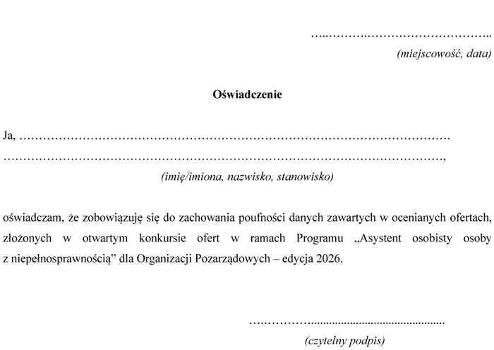 4. Członkowie Komisji składają oświadczenie o zachowaniu poufności danych zawartych w opiniowanych ofertach w związku z ich udziałem w pracach Komisji. Wzór oświadczenia o zachowaniu poufności danych stanowi załącznik nr 2 do zarządzenia.