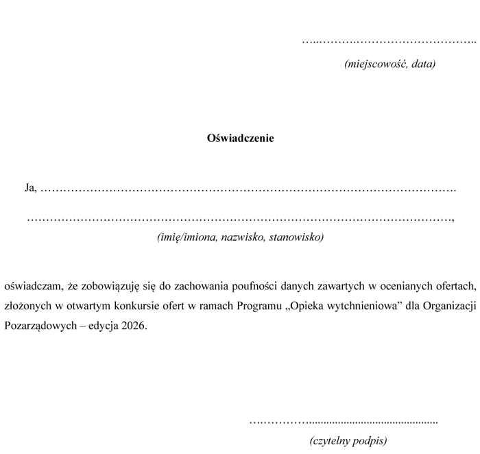 4. Członkowie Komisji składają oświadczenie o zachowaniu poufności danych zawartych w opiniowanych ofertach w związku z ich udziałem w pracach Komisji. Wzór oświadczenia o zachowaniu poufności danych stanowi załącznik nr 2 do zarządzenia.