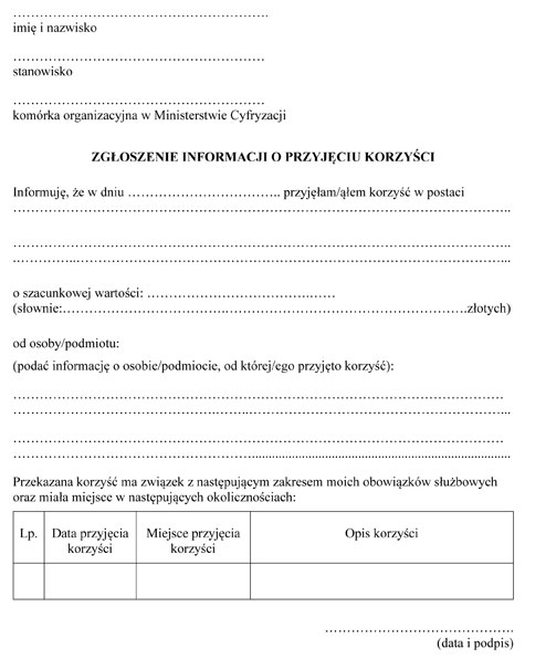WZÓR - ZGŁOSZENIE INFORMACJI O PRZYJĘCIU KORZYŚCI
