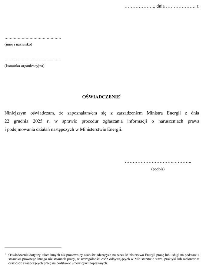 w sprawie procedur zgłaszania informacji o naruszeniach prawa i podejmowania działań następczych w Ministerstwie Energii