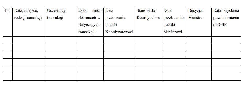 WZÓR - REJESTR POWIADOMIEŃ GENERALNEGO INSPEKTORA INFORMACJI FINANSOWEJ