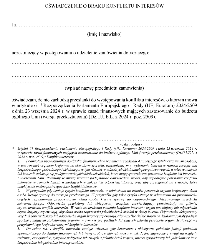 WZÓR - OŚWIADCZENIE O BRAKU KONFLIKTU INTERESÓW
