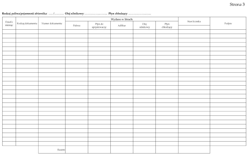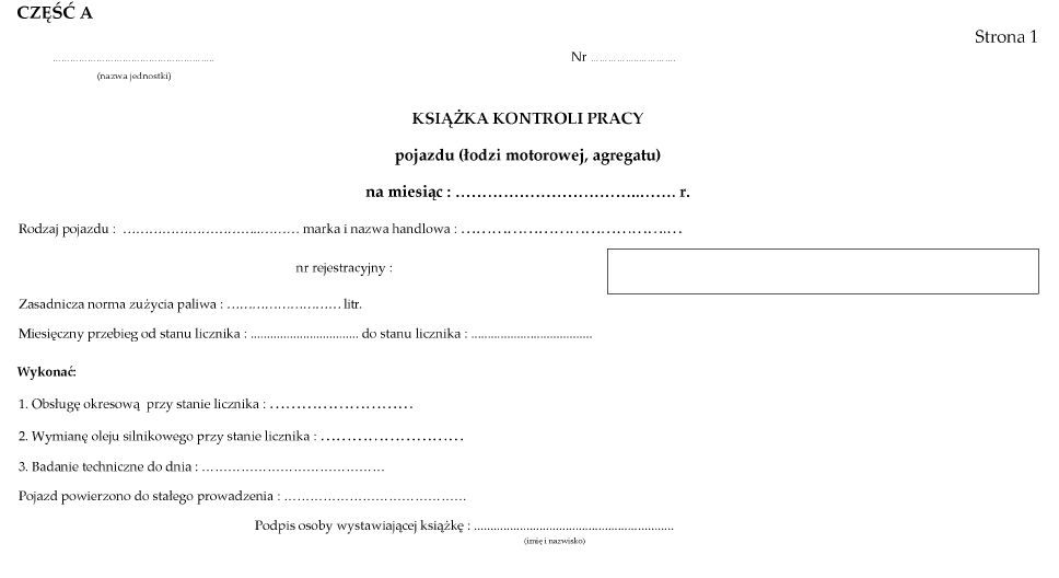 WZÓR - KSIĄŻKA KONTROLI PRACY POJAZDU (ŁODZI MOTOROWEJ, AGREGATU)
