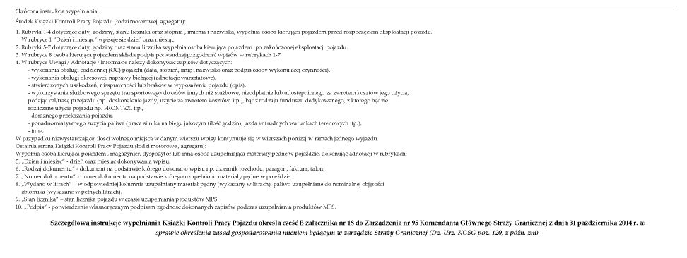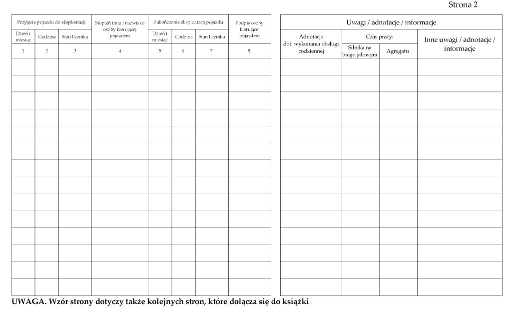 § 2. Wzór książki kontroli pracy pojazdu (łodzi motorowej, agregatu) oraz instrukcja w sprawie zasad jej wypełniania, określone w załączniku nr 18 do zarządzenia zmienianego niniejszym zarządzeniem stosuje się na dotychczasowych zasadach do czasu wyczerpania posiadanych w jednostkach organizacyjnych zapasów, jednak nie dłużej niż do dnia 31 marca 2026 r.