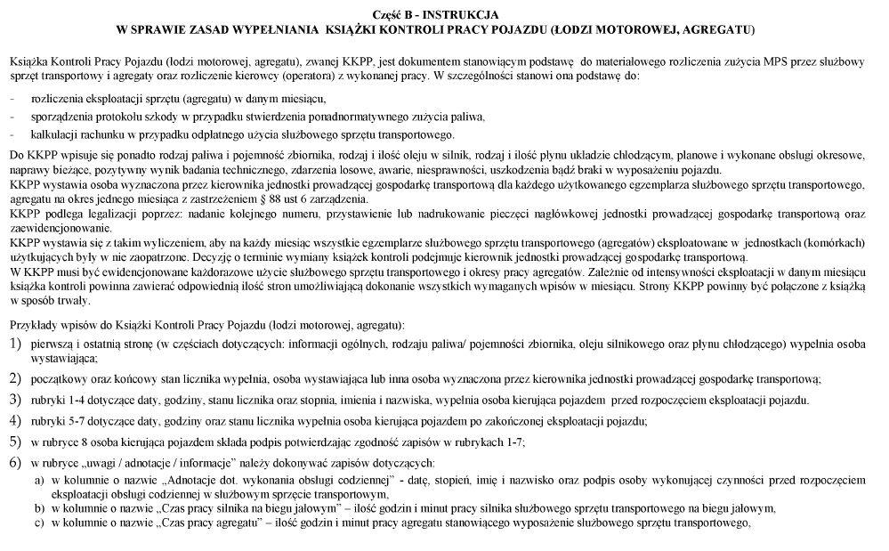 „§ 95. 1. Do celów innych niż służbowe, za zgodą kierownika jednostki prowadzącej gospodarkę transportową, służbowy sprzęt transportowy może być użyty nieodpłatnie lub udostępniony za zwrotem kosztów jego użycia skalkulowanych po kosztach zakupu paliwa.