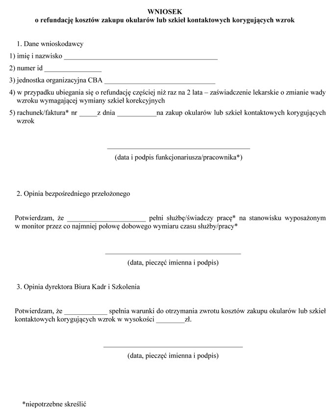 WZÓR - WNIOSEK O REFUNDACJĘ KOSZTÓW ZAKUPU OKULARÓW LUB SZKIEŁ KONTAKTOWYCH KORYGUJĄCYCH WZROK