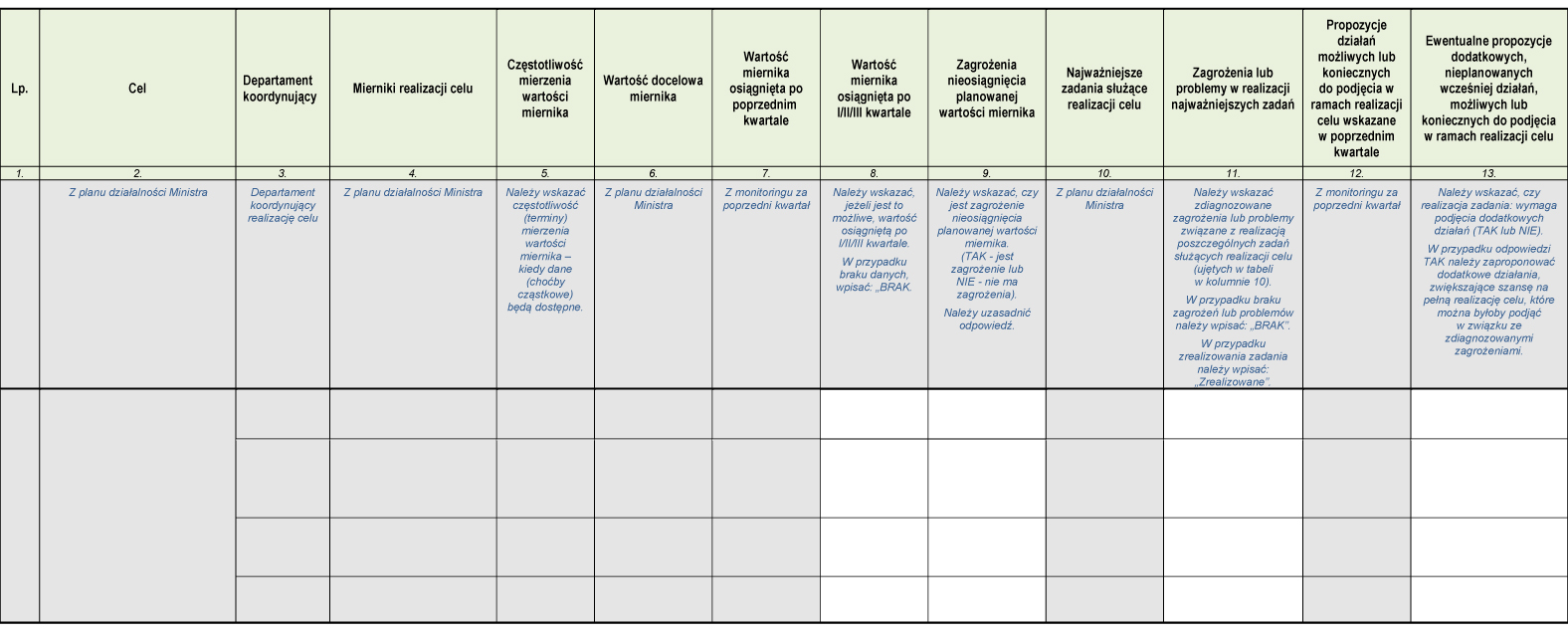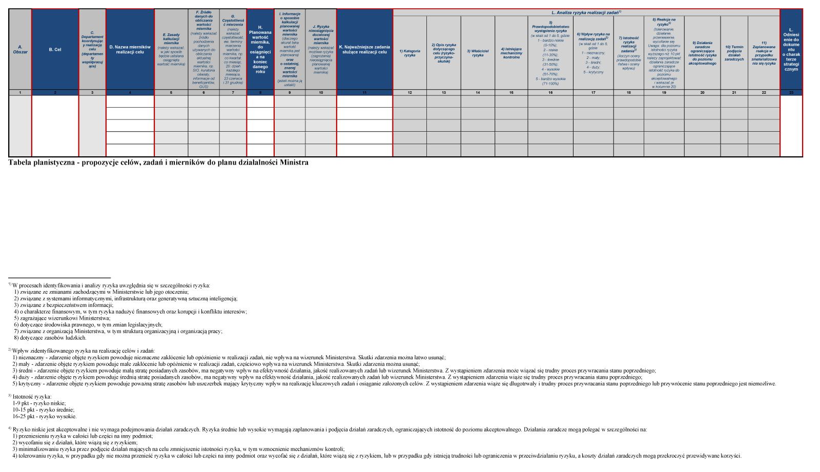 Tabela planistyczna - propozycje celów, zadań i mierników do planu działalności Ministra