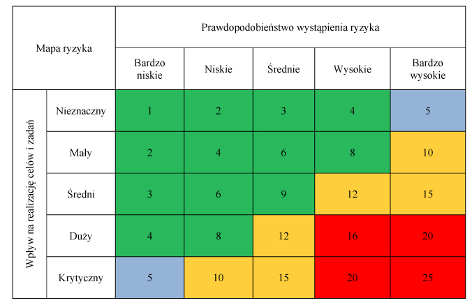 10) mapie ryzyka – należy przez to rozumieć wszystkie zidentyfikowane i przeanalizowane ryzyka przedstawione w zestawieniu graficznym jako relacja prawdopodobieństwa wystąpienia danego ryzyka i jego wpływu na realizację celów i zadań określonych w planie działalności Ministra;