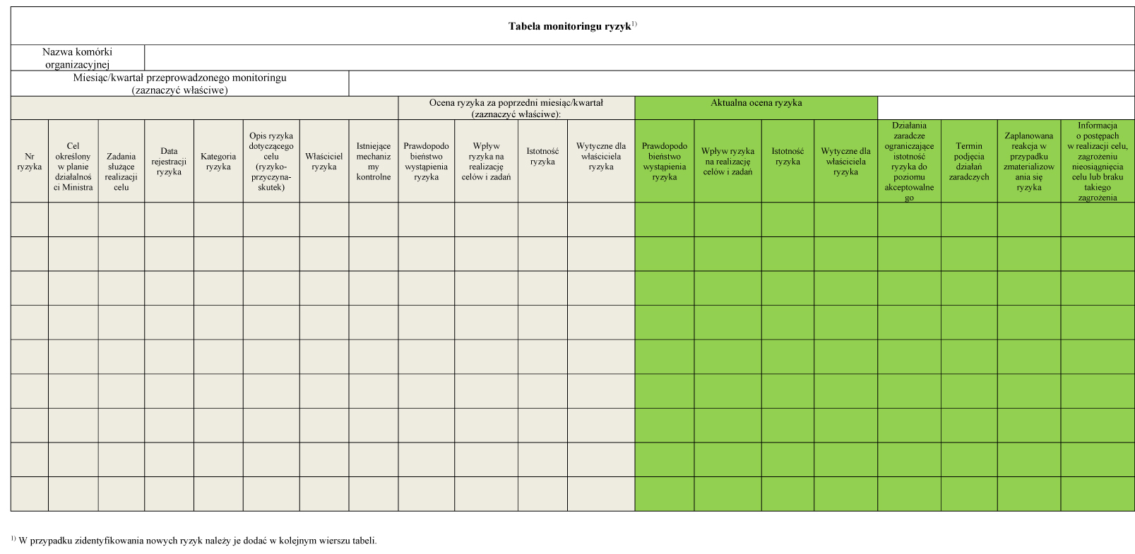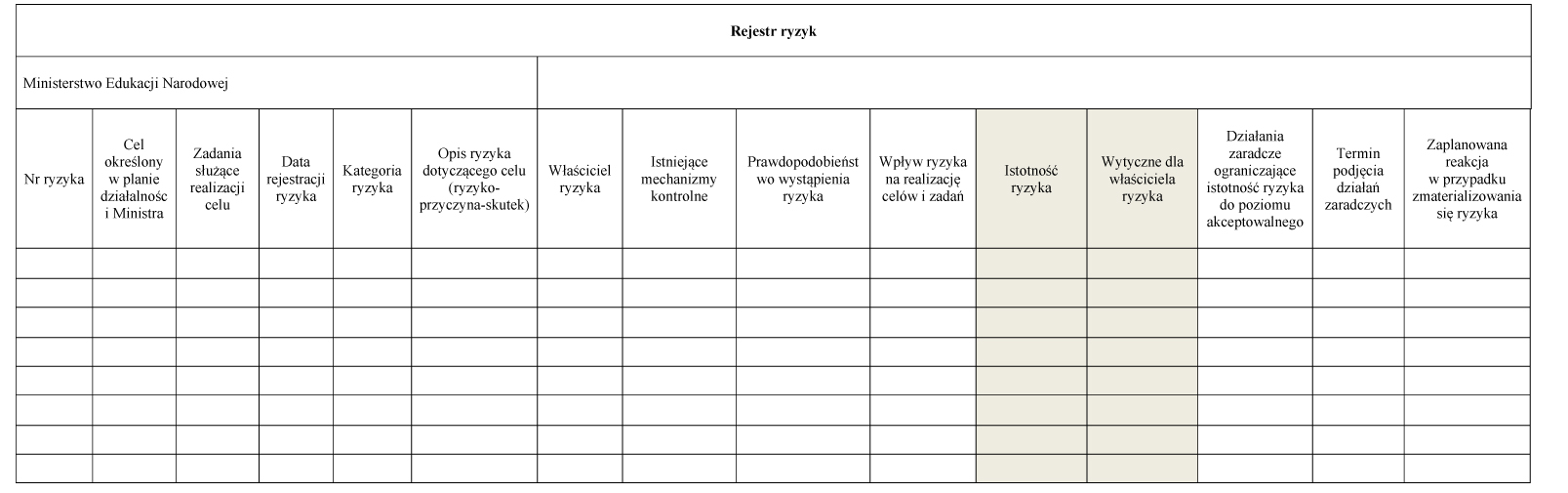 11) rejestrze ryzyk – należy przez to rozumieć rejestr ryzyk zidentyfikowanych w Ministerstwie;