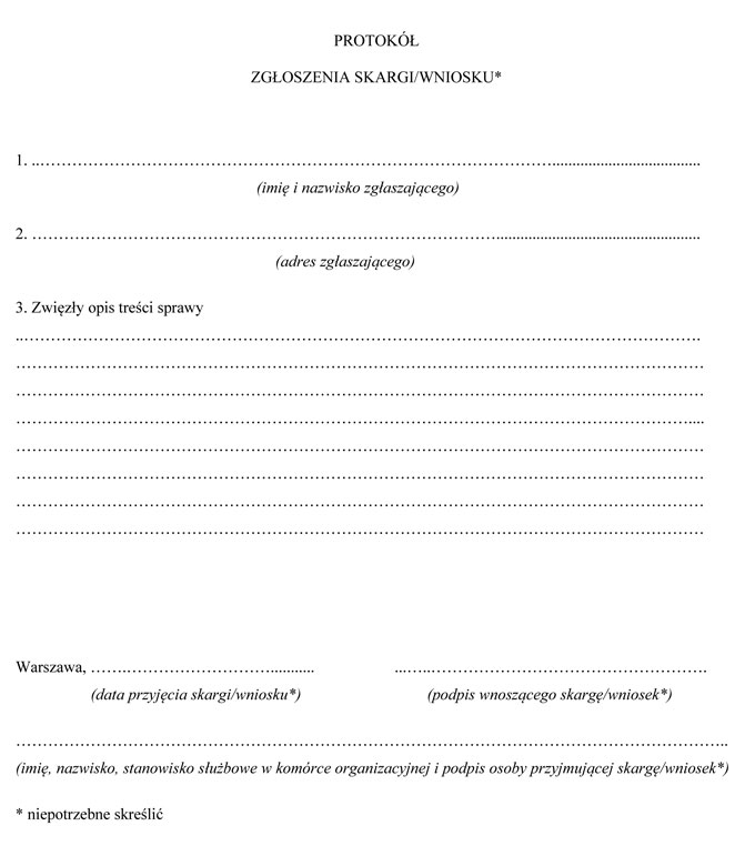PROTOKÓŁ ZGŁOSZENIA SKARGI/WNIOSKU*