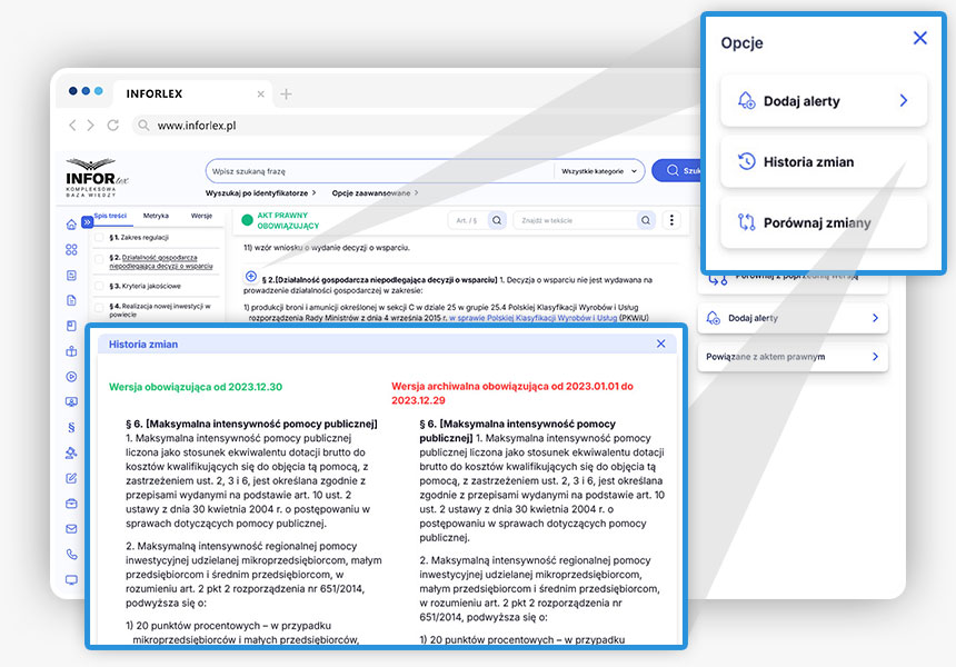W treści aktu prawnego przy artykule z lewej strony są przyciski, które umożliwiają przeanalizowanie zmian konkretnego przepisu.