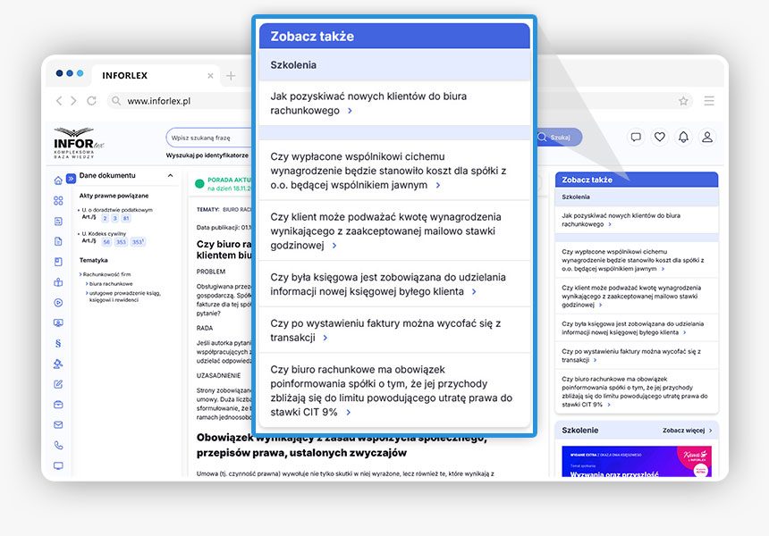 Wykorzystując funkcjonalności zamieszczone w prawej części strony artykułowej, możemy zapoznać się z artykułami o podobnej tematyce albo obejrzeć wideo dotyczące tego samego tematu.