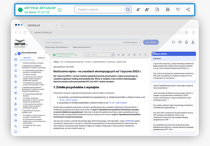 Na górze strony mamy cały czas pod ręką wyszukiwarkę, możemy też przeszukiwać dokument, zwiększać lub zmniejszać czcionkę, drukować, zapisywać do formatu pliku Word i dodawać do schowka i klawisz dzielenia się na mediach społecznościowych i przy wykorzystaniu maila.