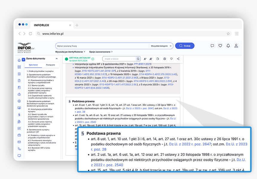 Pod każdą poradą i artykułem znajduje się szczegółowa informacja o podstawie prawnej oraz ekspercie, który jest autorem publikacji.