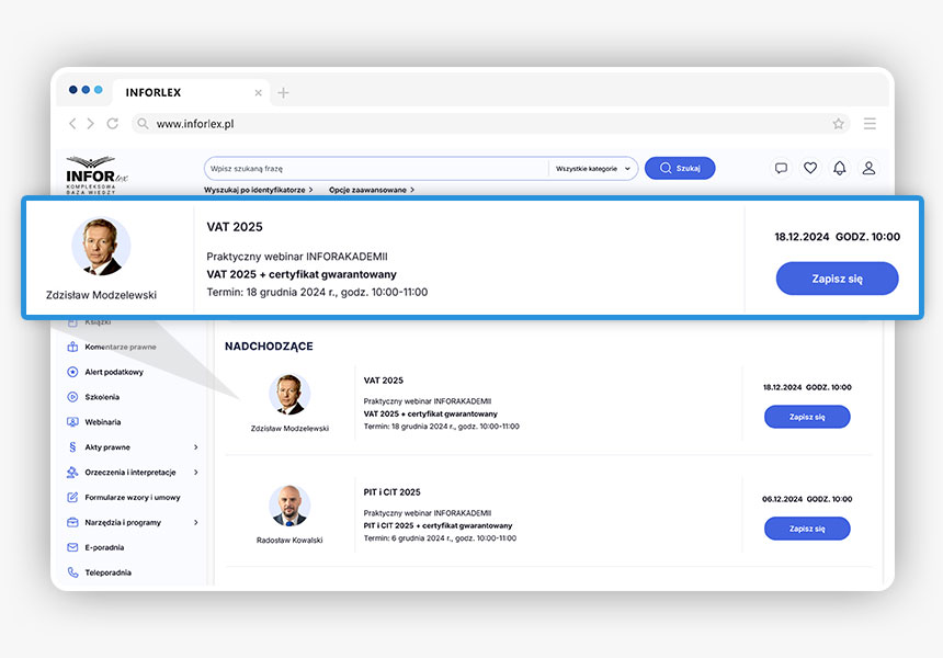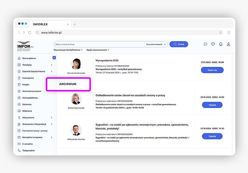 Webinaria dostępne są w INFORLEX w wersji Superpremium.